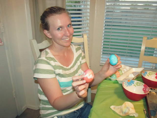Dear old Aunt Whitney (like how I referred to you as old, Whit?) came over to help all of us Merrills dye eggs for Easter. Not that anyone ate the eggs, well, Adi ate half of one of Easter morning.